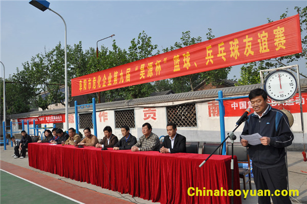 昊源集团副总经理高玉磊宣布:阜阳市危化企业第九届 “昊源杯”篮球、乒乓球友谊赛隆重开幕!