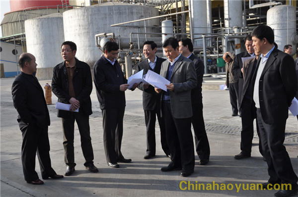 代表团一行深入生产一线进行了实地考察。公司总经理刘博向代表团详细的汇报了我公司近几年的发展状况。他说,昊源集团近几年的发展主要得益于市委、市政府的坚强领导和大力支持,目前,我公司在安徽化工行业中处于龙头地位,在全国同行业中处于前20强。我们以市场为导向,紧紧抓住发展这一条主线,突出节能降耗、安全、环保三大主题,发展低碳经济,走可持续发展道路;目前,总投资36亿元的航天炉项目、界首“12.20”搬迁项目、昊源新天的双氧水项目、昊源天泉塑业扩建等项目都在紧张的施工建设当中,这些项目的投运,将给昊源的发展投入新的活力。预计在“十二五”末,我公司将形成销售收入80亿元以上的规模。