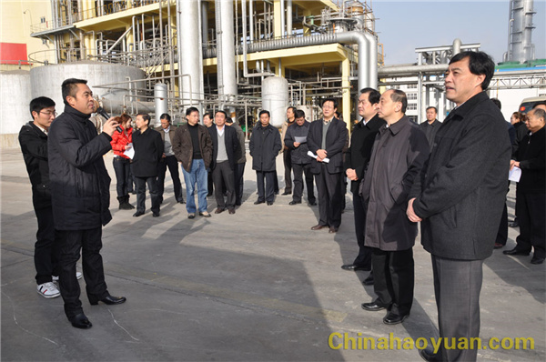 在考察中,公司领导班子成员热情接待,并向考察团简要的介绍了我公司近几年的发展情况和下一步的发展规划。汇报中说,昊源集团始建于1970年,目前在全省化肥行业中已处于领先地位,长期以来,我们在发展中始终坚持技术升级和结构调整,在下一步的发展中主要向精细化工转型,不断延深产品链,提高产品附加值,特别是航天炉项目和下游精细化工项目以及界首“12.20”搬迁等项目的实施,将为公司下步的发展奠定坚实的基础。预计,到“十二五”末企业销售收入将达到80亿元以上。