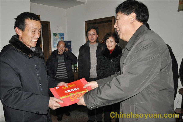 会上,贾国华书记为我公司送上了5万元慰问金。随后,贾国华书记一行在昊源公司领导的陪同下来到昊源公司全国劳模刘开连家中进行慰问。贾书记详细询问了刘开连的工作和生活情况。他要求:“劳模是我们企业的财富,他们为企业的发展做出了巨大的贡献,我们要在用好的同时要保护好他们。”刘开连紧紧的握住贾书记的手,十分感动的说:“感谢晋煤集团领导对我们的关怀,感谢贾书记给我们春节送来了温暖。”