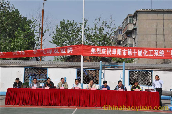 开幕式上,昊源集团副总经理凡殿才发表热情洋溢的致辞。他说,体育活动是职工生活的重要组成部分,不仅能够增强企业之间的了解,还为企业之间搭建一个友谊平台;同时,激发员工勤奋向上、拼搏进取,是丰富员工业余文化生活的一项重要举措。在此,希望全体参赛运动员发扬“更快、更高、更强”和“团结、友谊、进步”的精神,遵守运动员守则,团结协作、顽强拼搏,赛出水平、赛出风格、赛出友谊,全面展现新时期化工工作者的风采,取得运动成绩与精神文明双丰收;希望全体裁判员、教练员、工作人员坚持公开、公平、公正的原则,恪尽职守,严于律己,严肃赛风,严格赛纪,确保此次体育活动的顺利进行。本届篮球、乒乓球友谊赛得到阜阳市化工协会的大力支持。