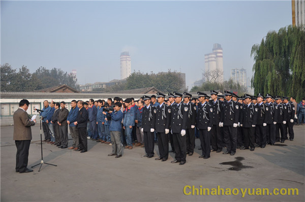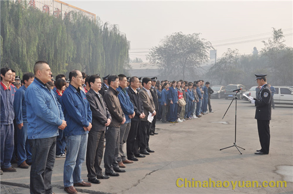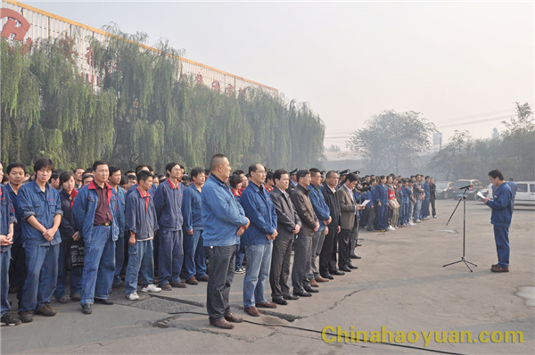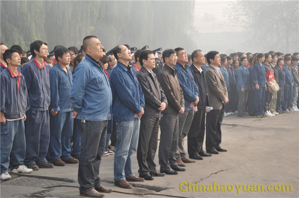 随着雄壮的国歌声响起,在经警队旗手的护送下,五星红旗冉冉升起。公司党委副书记李继忠作军训总动员讲话。他说,军训月活动是昊源集团企业文化建设的重要组成部分,也是提高员工队伍素质,培养全员协调一致,共同向上和展现企业员工精神风貌的重要体现。同时,军训也是一种学习,也是一种磨练和考验。希望全体干部员工充分准备、以饱满的热情、顽强的毅力和旺盛的斗志参加军训,同时,他还对参加军训的员工提出具体要求,希望参加军训的员工都能以优异成绩完成本次军训任务。