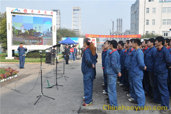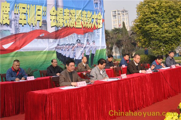 金秋送爽,硕果累累。经过一个月紧张的军事训练,昊源集团所有参加军训的员工迎来了激动人心的时刻。11月1日,集团公司操场上成了蓝色的海洋,公司“军训月”汇操表演暨表彰大会在这里隆重举行。公司党委副书记、副总经理李继忠,副总经理高玉磊、杨捷、凡殿才、田怀广,总经理助理高明林、张海生,界首昊源公司总经理李广修,阜南新天总经理王玉杰等领导出席本次大会。大会由公司工会主席、副总经理高玉磊主持。