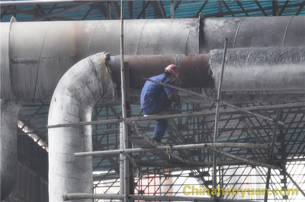 ⑤、维修人员在为管道更换保温材料 。 ⑥、保卫处人员在维护消防水泵 。