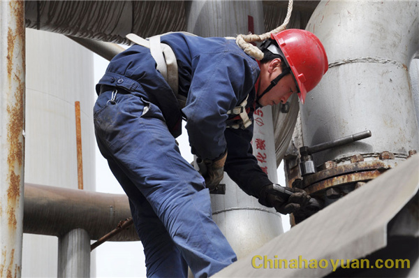 ①、维修人员在维护设备漏点 ②、化管车间积极做好化肥防潮工作。