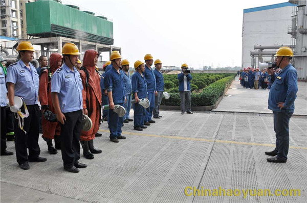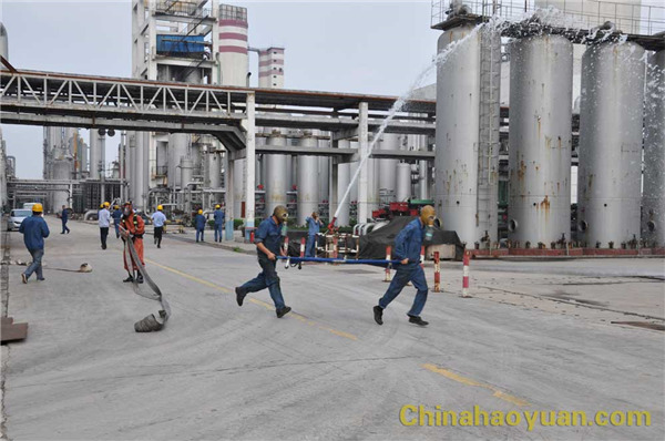 为深入贯彻“科学发展、安全发展”的理念,继续秉承“安全第一,预防为主,综合治理”的安全管理方针,从而不断增强员工的应急处理能力、团队协作能力,7月3日,由集团公司安委会、安全科主办,联合车间组织实施的“φ2000合成冷交泄露着火应急处理预案”演练拉开帷幕。