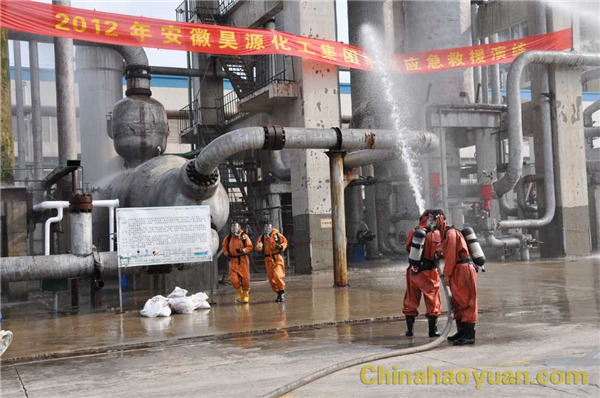 此次演练得到市安监局的大力支持。市安监局局长李哲、副局长汪金城在公司副总经理凡殿才的陪同下,莅临现场观摩、指导反事故应急救援演练。此次反事故应急救援演练方案为2米合成高压气体泄漏。