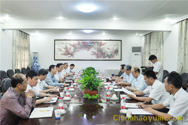郑高潮董事长对黄岳忠一行在百忙之中来昊源指导工作表示欢迎和感谢。随后,郑董事长就昊源公司的组织机构、企业现状、产品结构、上半年的生产经营情况向省、市领导进行了详细汇报。针对企业生产经营中遇到的原材料上涨、电价居高不下、企业用工难等一系列问题和省、市领导进行了交流和探讨。