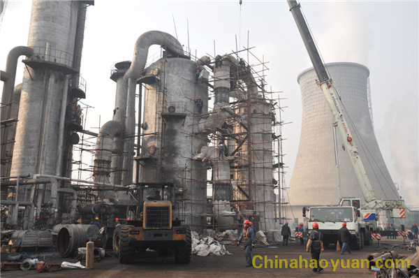 此次4#变换工艺整改,是将原来的中低变工艺彻底转变全低变流程。为确保项目安全顺利的实施,公司专门成立了技术攻关指挥小组,进行现场指导作业。根据现有设备的流程情况,技术组人员通过现场观察测量,并经详细计算和论证后制定了详细的、完整的技改方案。采取将原有中变炉改为全低变的一、二段,段间增设增湿器,实 施增湿器喷水取代煤气冷激,同时对原饱和塔、主热交和水调温器等设备进行改造,有效提高了其传质传热效率。此次改造充分利用了原有的设备,实现公司提出的用时短、方案优、投资省的要求。此次变换改造方案顺利的实施,无不体现出昊源人的智慧和力量。