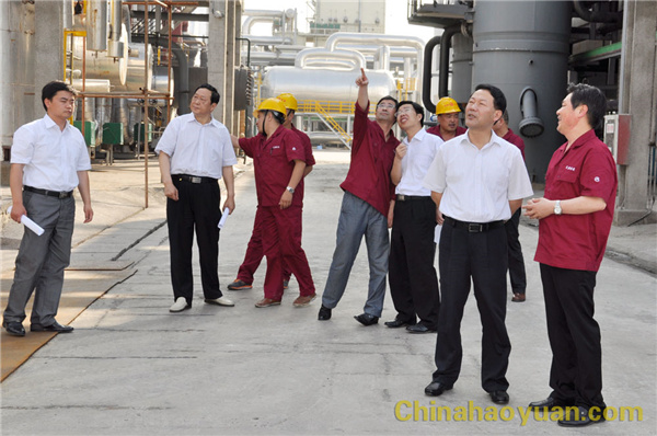 叶露中一行深入到公司重点建设项目航天炉粉煤加压气化装置现场,实地察看了装置运行情况。在航天炉项目操作室内,公司副总经理高玉磊向叶露中一行介绍了企业生产经营、项目建设和未来发展规划等情况。公司实施的两套航天炉粉煤加压气化项目一期装置已于4月中旬建成,并一次开车成功,目前装置运行状况良好。以昊源公司为龙头的阜阳煤基新材料产业园建设工作也正在进行之中,昊源将紧紧围绕国家产业政策,在稳定基础化工的同时,做强精细化工,逐步实现基础化工向精细化工和化工新材料的转型跨越。