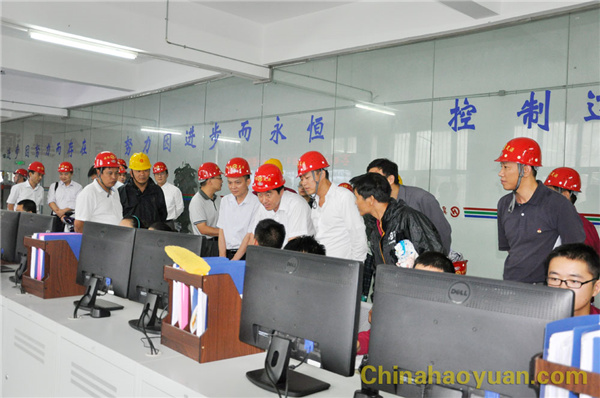 在会议室,郑高潮就公司安全管理组织机构、安全生产管理人员职责、生产人员业务技能与安全知识培训、重大危险源实时监控措施、安全事故应急演练开展等情况向官山月一行作了详细汇报。郑高潮说,昊源公司长期以来,把管理人的不安全因素放到安全管理的第一位,通过三级安全教育、日常安全知识培训、岗位师傅带徒弟等多种形式的教育培训,不断提高生产人员业务技能及安全意识;通过为一线人员提供不同的晋升渠道,激励一线人员勤奋学习、苦练内功、争进上游,从而形成我要学知识,我要认真干的氛围,不仅保障了各项教育的有效实施,还使各项工作扎实推进,有效降低了安全生产事故的发生。