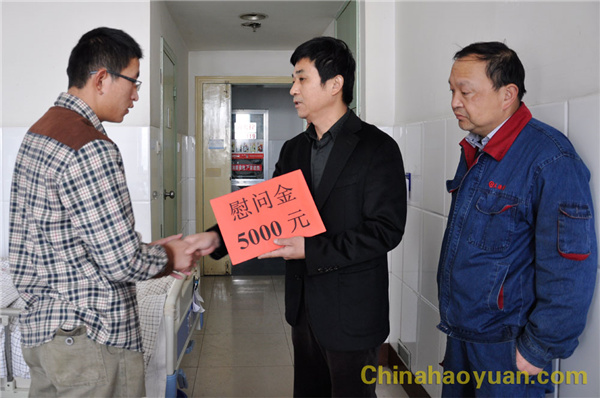公司领导得知这个消息后,对刘沙沙一家人的生活十分牵挂。11月16日上午,工会副主席戚伟、杨波及尿素车间主任陈飞等一行代表公司来到阜阳市第二人民医院探望刘沙沙的父亲,并送去5000元慰问金。