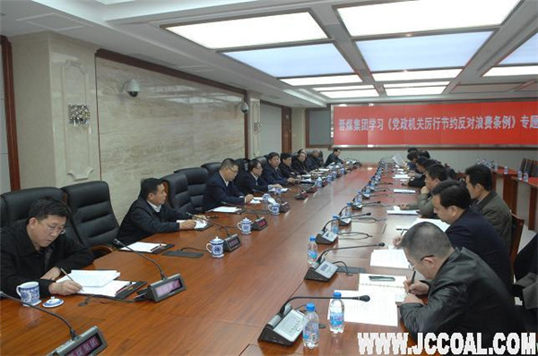 12月9日,晋煤集团党委中心组集中学习《党政机关厉行节约反对浪费条例》,要求认真贯彻《条例》规定,结合党的群众路线教育实践活动,将《条例》落实到单位和个人。