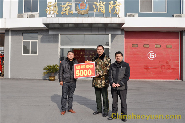 高明林将饱含昊源职工深切之情的慰问金转交给队领导,并转达了公司党政领导对颖东消防官兵的亲切慰问。