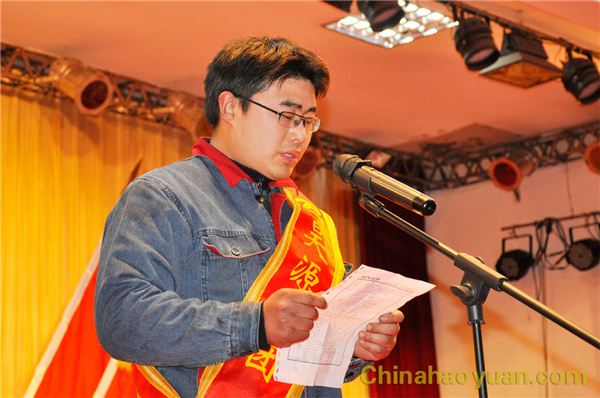 先进管理者代表朱世朋、先进工作者代表史亮分别代表中层管理者和员工发言,他们表示:在新的一年里,将继续奉献上自己全部的力量与热情,共同携手为昊源未来的腾飞撑起一片蓝天!