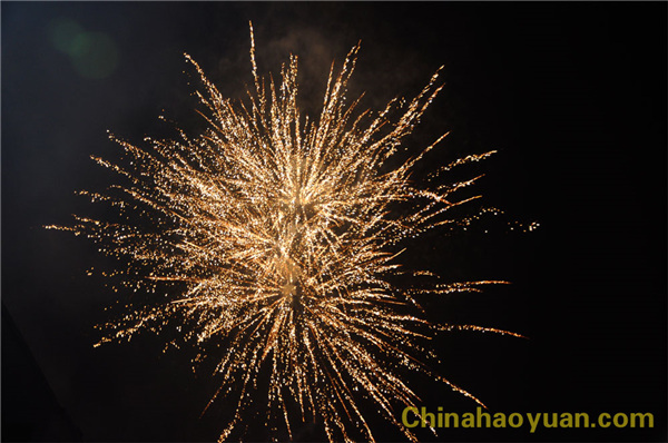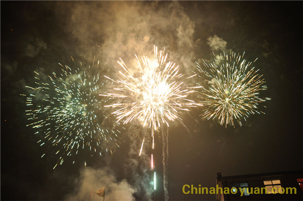19点28分,在昊源集团正门前的上空,伴随着震耳欲聋的礼炮声,2014年元宵烟花燃放正式拉开帷幕。各色礼花由低到高、由缓到急、由小到大、由疏到密,各种花卉造型的烟花在夜空中流光溢彩,次第开放,高空银闪瀑布犹如银河落九天。一幅幅美艳夺目的画面,构成诗的意境、花的海洋。看着一个又一个美景在夜空升起,人们不禁大声欢呼,续而又爆发出阵阵掌声。此时,路边的观众纷纷拿出手中的相机、手机,抢先记录下这儿美好的一刻,烟花和人群构筑了一幅美丽画面,预示着新的一年里人民生活幸福、社会和谐、祖国昌盛。