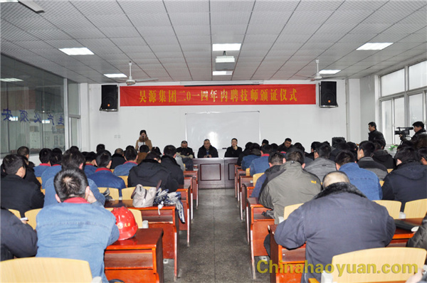 2月17日,昊源集团内聘技师颁证仪式在公司职教中心举行。出席颁证仪式的公司领导有党委书记、董事长郑高潮,党委副书记李继忠、常务副总经理凡殿才、副总经理张海生、高明林。颁证仪式由党委副书记李继忠主持。公司领导为张群等五十六名技师颁发聘书,体现了企业“靠能力竞争、靠平台发挥、靠通道成长”的人才成长理念,为技能人才成长构建了平台和通道。