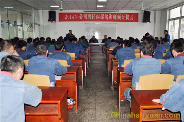 常务副总经理凡殿才首先宣读了昊源公司2014年内部培训师聘任决定及培训师人员名单。2013年内部培训先进单位电仪车间主任陈大伟、先进培训师刘昌付分别与会发言。陈大伟向与会人员介绍了基层单位抓好员工内部培训的典型经验;刘昌付从自身出发,向与会人员介绍了成长为一名先进培训师的体会和做法。