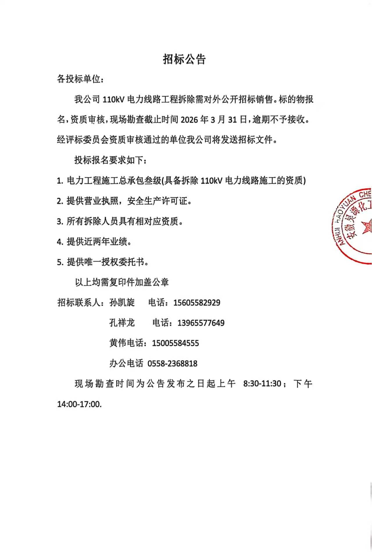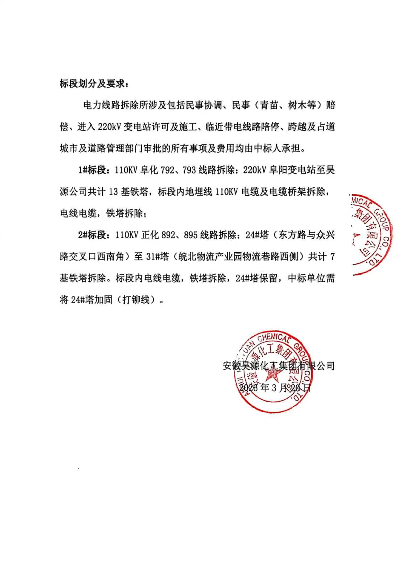 110KV电力线路工程拆除公开招标销售