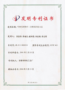 安徽昊源化工集团有限公司为国家高新技术企业,拥有省级企业技术中心,拥有各类专利43项,其中包括吗啉高沸物中二甘醇的回收方法、一种粗二甘醇胺的分离纯化方法、一种由二甘醇低压法合成二甘醇胺的方法等6项国家发明专利;一种甲醇精馏系统节能装置、固定床间歇制气煤气洗气降温塔气体分布器、一种全低变变换系统增湿装置、一种丙酮加氢氨化合成异丙胺的方法等37项国家实用新型。公司专利技术主要涉及专有产品、专有设备和专有技术等,吗啉产品拥有5项专利技术,二甘醇胺拥有4项专利技术。其中“一种保护吗啉催化剂的装置及其生产工艺(ZL200910144251.6)”获“安徽省专利优秀奖”。“一种由二甘醇低压法合成二甘醇胺的方法(ZL201410442739.8)”获“安徽省专利金奖”。尤其是二甘醇胺产品的成功开发,打破国外技术垄断,填补国内空白,经济效益良好,社会意义重大。