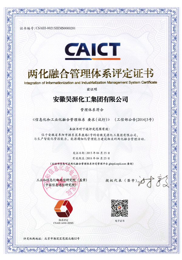 两化融合管理体系证书